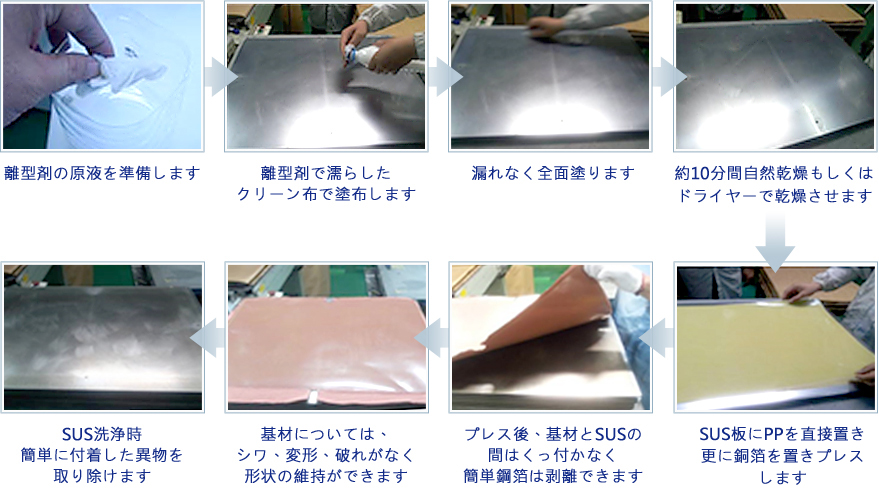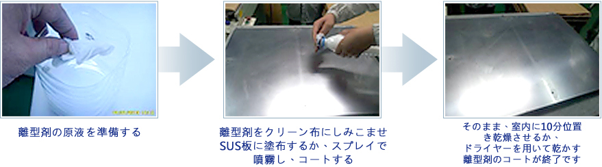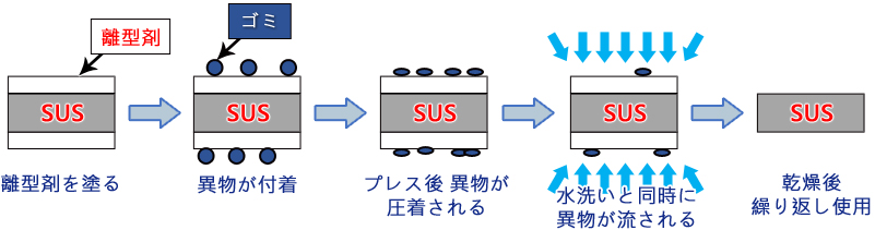 SUS板にウェスを用いて塗布し,使用後、水で洗い流すだけで、きれいになります。